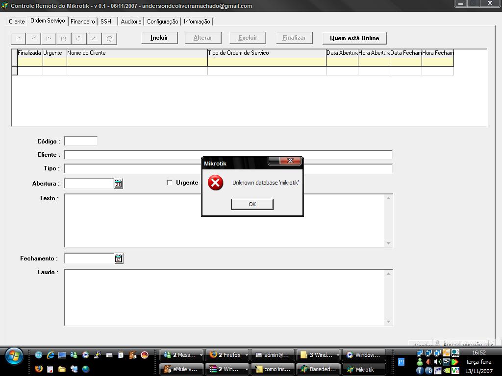 Está disponível agora na aba "Ordem de Serviço" um botão denominado "Quem está Online" , clicando nele , abre um janela aonde o sistema entra em contato com o MK via SSH , e executa um comando e retorna a resposta do MK.