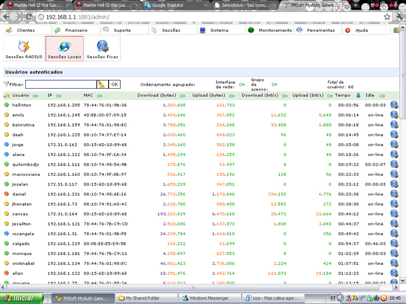 num e meu melhor dia mas para desmentir que com 20 clientes a wavion não presta toma aqui umas 2 telas da minha com servidor myauth com 60 clientes online sendo 10 cabeados e 50 wireless .