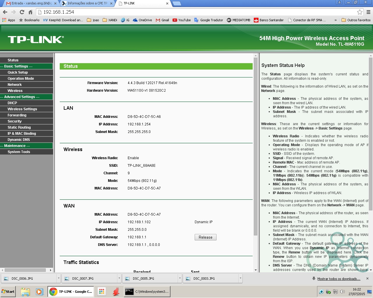 Vou colocar na mesma pasta um dump de 2mb do TL-WA500G, que é o mesmo hardware porém de um access point pra uso interno! que funciona lindo nas TL-WA5210G ou WOG212 v1.