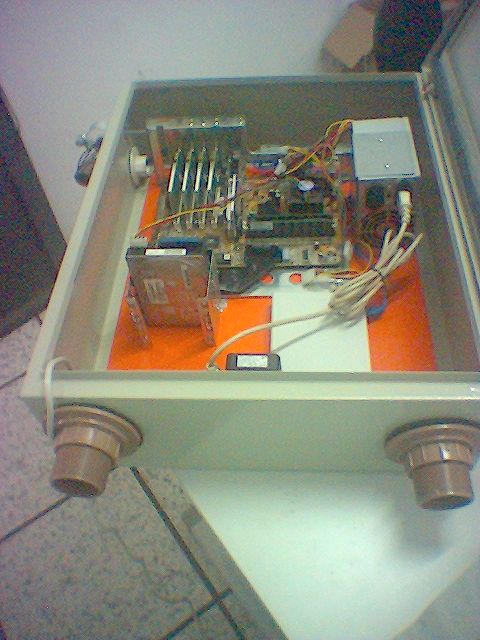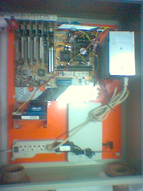 ainda falta alguns acabamentos. Deixei ele ligado hj, pra ver amanha como ficou a refrigeracao. Da pra ver uma entrada e uma saida de ar. Na saida, tem um cooler jogando ar para fora. Amanha cedo vou ver se preciso de um puxando o ar pra dentro tbm....