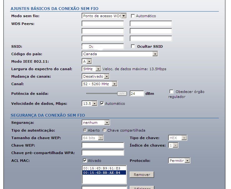 Ponta A - ta como AP WDS - com controle de MAC no access list.