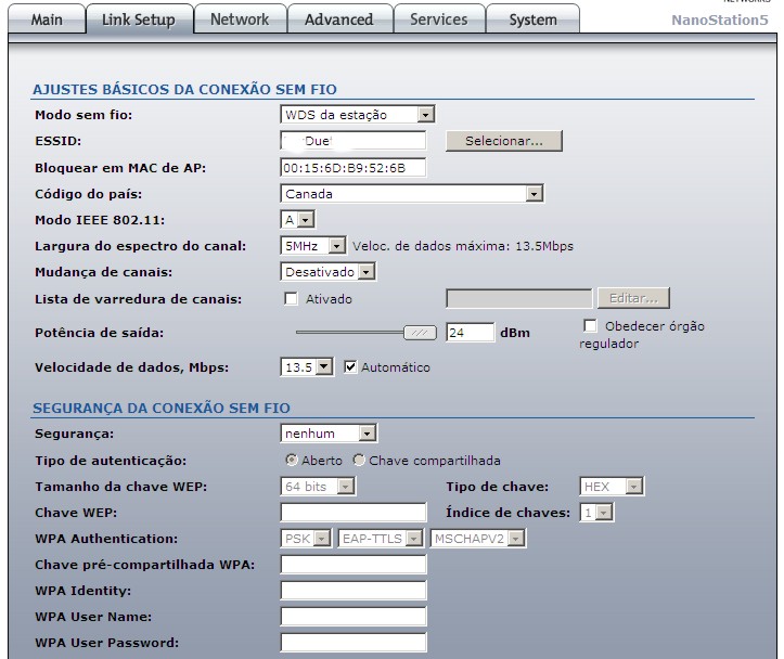 raramente eu consigo conectar na nano, eu sendo cliente e ela sendo ap, isso em 2.4, quadno conecta não pingo não faço nadaaa, configuraçoes udo certinho em bridge.. eu com a mesma faixa de ip etc etc, naõ ta me trazendo bons resultados