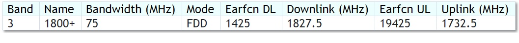 Observe que os valores de downlink= 1827.5Mhz e uplink 1732.5Mhz. Portanto a banda de operação é da faixa de 1800Mhz