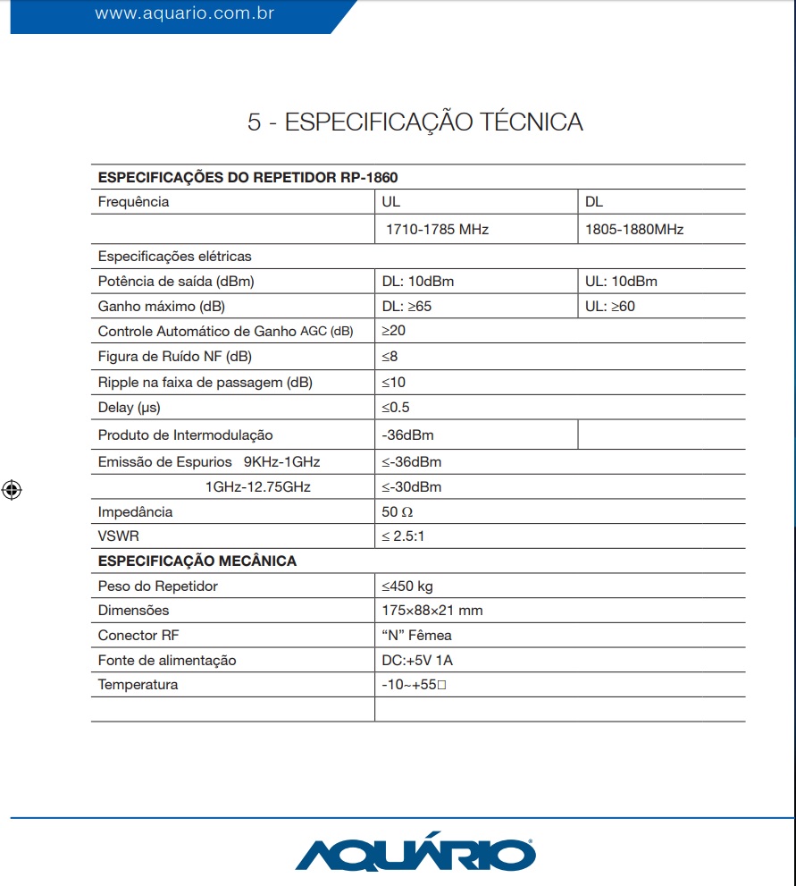 Agora vamos pegar por base um RP-1860 da Aquário, um teco de repetidor da banda de 1800Mhz: