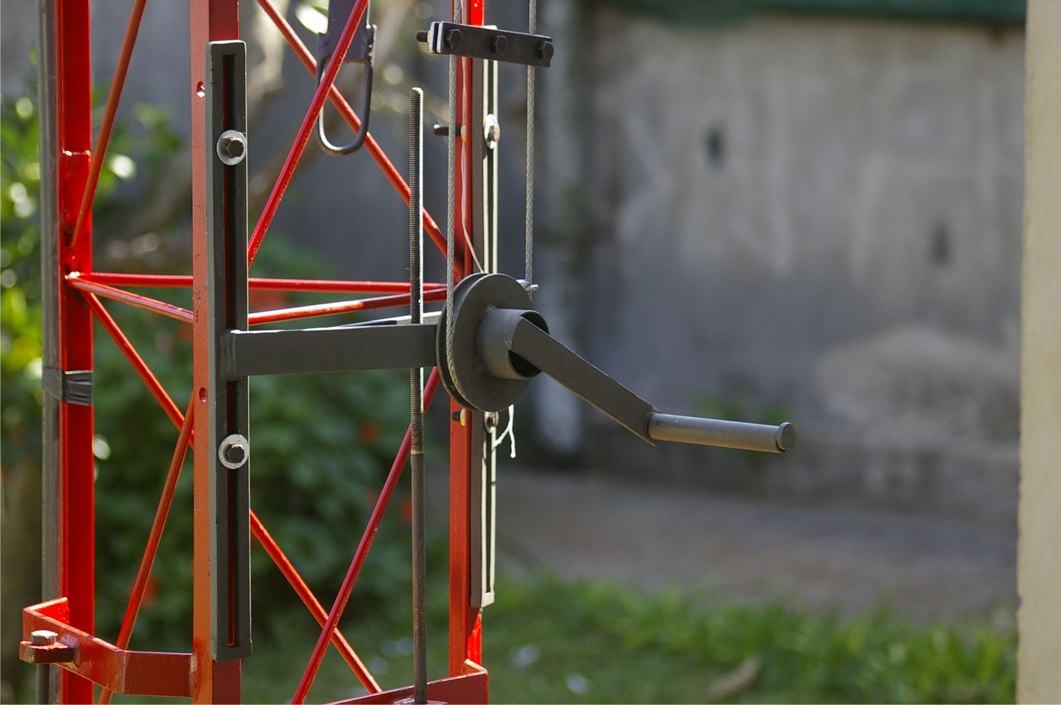 Um cabo de aço onde está preso a peça vermelha que aparece na foto.