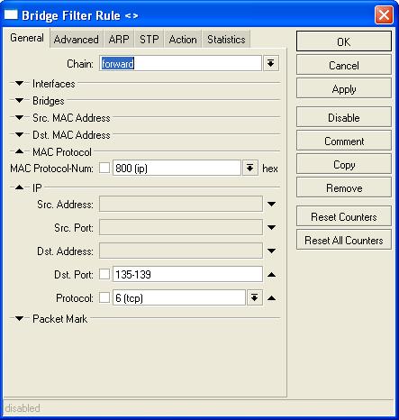 Padrão Bloqueando NETBIOS no Mikrotik Bridge