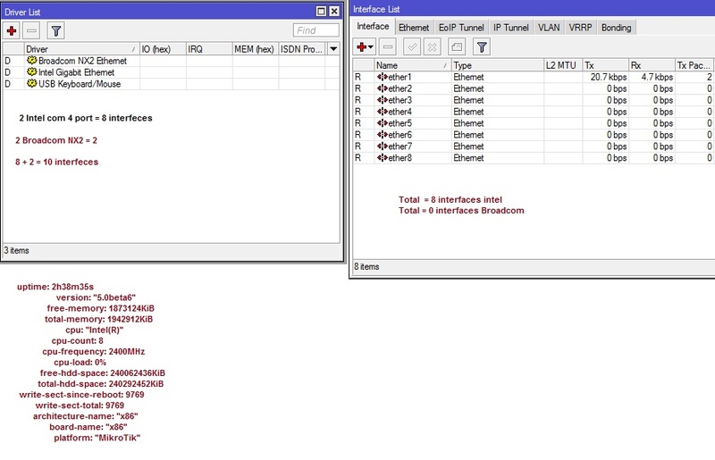 • Broadcom reconhce o driver no mikrotik, mas nao mostra as interfaces;