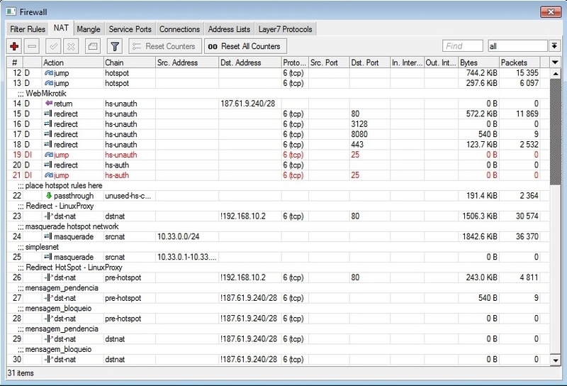 Opa Amigo, eu sei dessa informação rsrs... Mas falo na disposição regras antes do Hotspot, regras depois do Hotspot entendeu? dst-nat, src-nat, pre-hotspot, masquerade etc... Como mostrada nos prints em anexo.