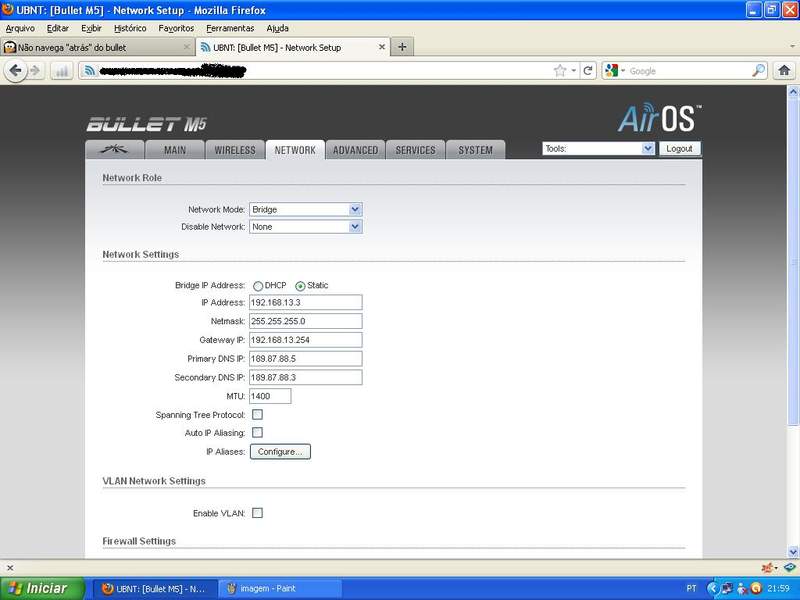 Até ai tudo bem, no entanto quando ligo o computador no bullet cliente, consigo pingar para todos os sites normalmente porem na hora de navegar só consigo acessar os sites do google: gmail, orkut... etc. mais se tento outro não dá.
