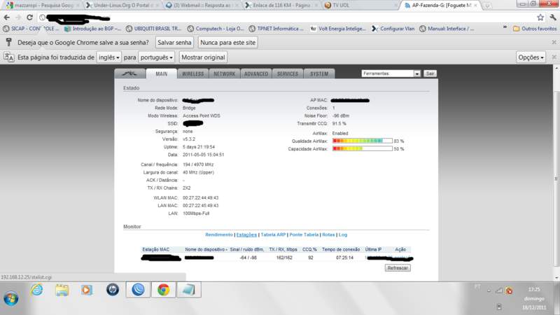 ja testei na tora deu 37Mbps download real..só tem um problema a torre do ap station q ta balançando mtooo, e qnd ela balança o sinal varia de -60 a -64 ate mais dependendo do vento... vou colocar uma trava nela amanha e ver como se comporta se estabilizar o sinal vou deixar assim...