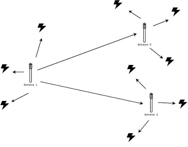 - Uma das antenas vai fazer a distribuição do sinal (principal) e depois terei as outras duas ( em triangulação) que o irão fazer a propagação de sinal, mas o sinal já chega fraco a estas duas antenas.