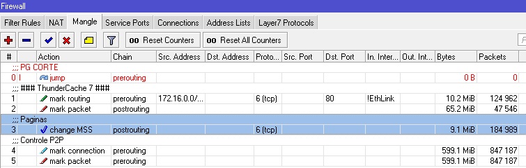 As regras de MSS nas versões atuais são adicionadas automaticamente na aba Mangle do firewall, e são duas regras feitas: