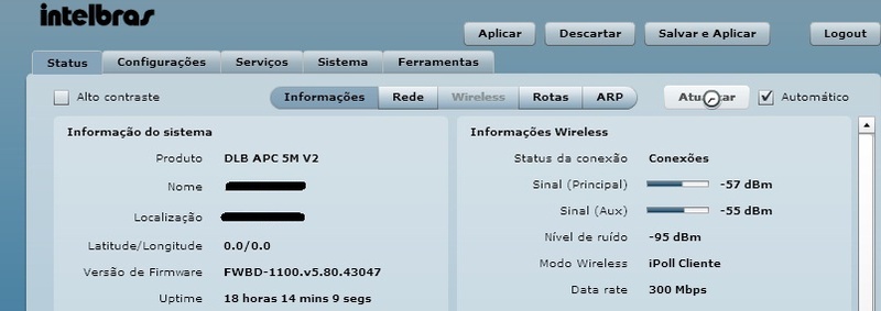 sinal -57, e o 3 enlace com os novos intelbras q fecho. Muito bom equipamento.