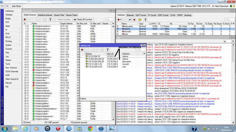 Boa tarde galera tenho um provedor com +ou- 400 clientes ativos toda em bridge atendendo os clientes no cabo sendo que tenho rede cabeada e rede wireless sendo que chega um enlace em cada predio e atendo os clientes no cabo todos clientes sao no cabo esta aparecendo no log do mikrotik o mac do radio do cliente tendo acesso ao ip dos radios que fazem os enlaces da minha rede os radios dos clientes esta em modo router recebe um ip na wan (cabo)e faz nat para lan no ip bindings esta como regular para aparecer a tela do hotspot teria alquma forma de evitar isso minha rede tem 4 interfaces 10.5.0.0/16 rede cliente,172.30.254.0/24 rede cliente,172.31.255.0/30 rede mk-auth (radius) e 172.32.255.0/30 rede wan vinda de um pcc sendo que as rede 10.5.0.0/16 (cliente)e a rede 10.254.254.0/24 (rede enlace) esta na mesma placa de rede