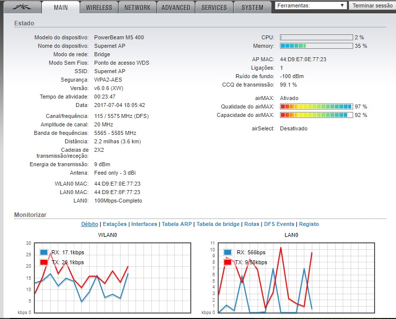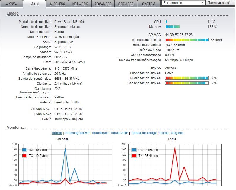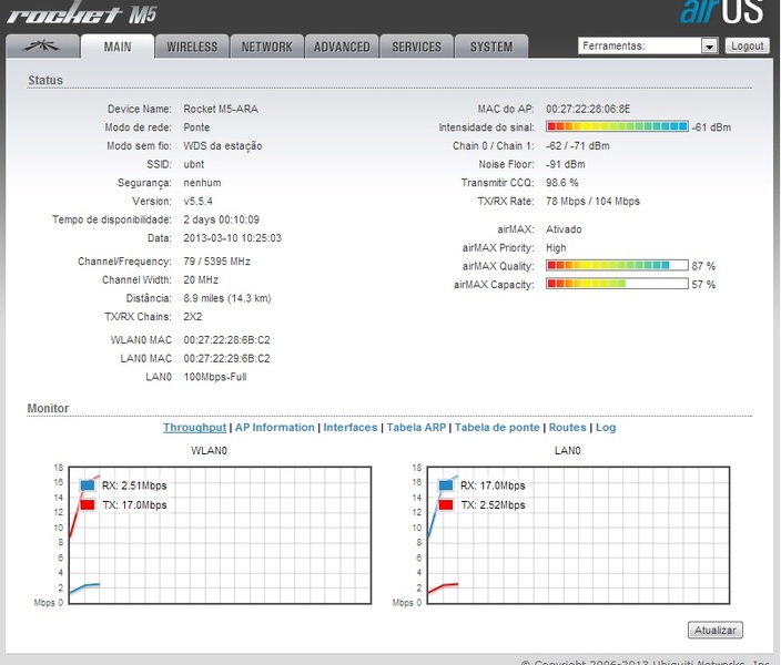 Verifiquei que muitos tópicos são referentes as taxas de TX (transmissão) e RX (recepção) dos produtos da Ubiquiti Network. Recentemente passei pelo mesmo problema, as minhas taxas estavam fixadas em 39 MBPS e apresentavam resultados inferiores a 5 MBPS. Conseguindo resolver o problema, dediquei um tempo para postar um passo-a-passo para ajudar a todos aqui no fórum que necessitam.