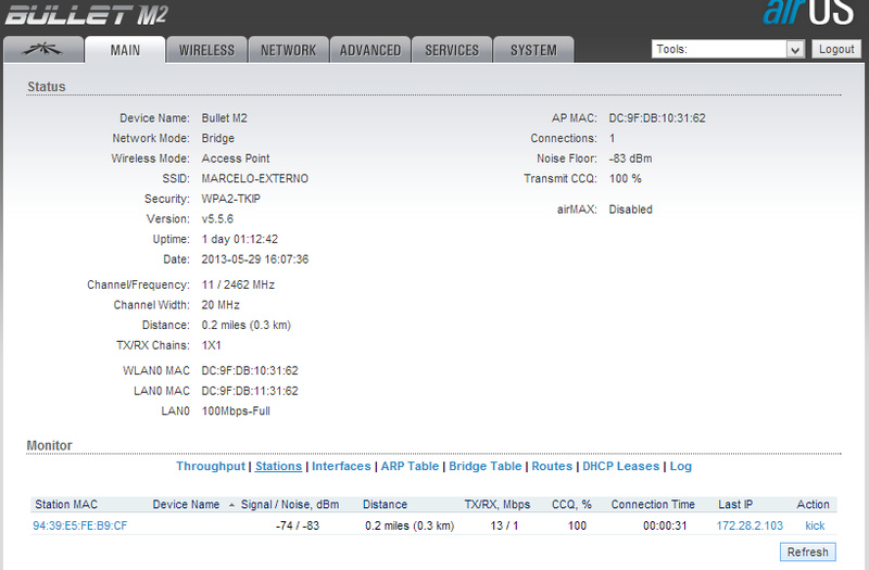 O meu amigo pediu para eu testar com uma nano station apontada pra ele.