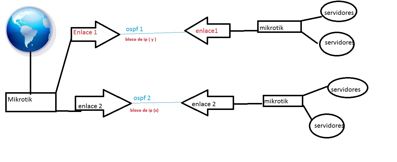 O problema que eu tenho é que quando tinha só 1 enlace funcionava tudo normal, depois que resolvir ampliar uma rota ai que comecou alguns problemas, o enlace (n°1) ele funciona a internet normal nos servidores, mas porem eu não consigo acessar alguns servidores do enlace (n°2), a rota esta ela toda em ospf, e publica os ips normal, mas esta apresentado estes problema.