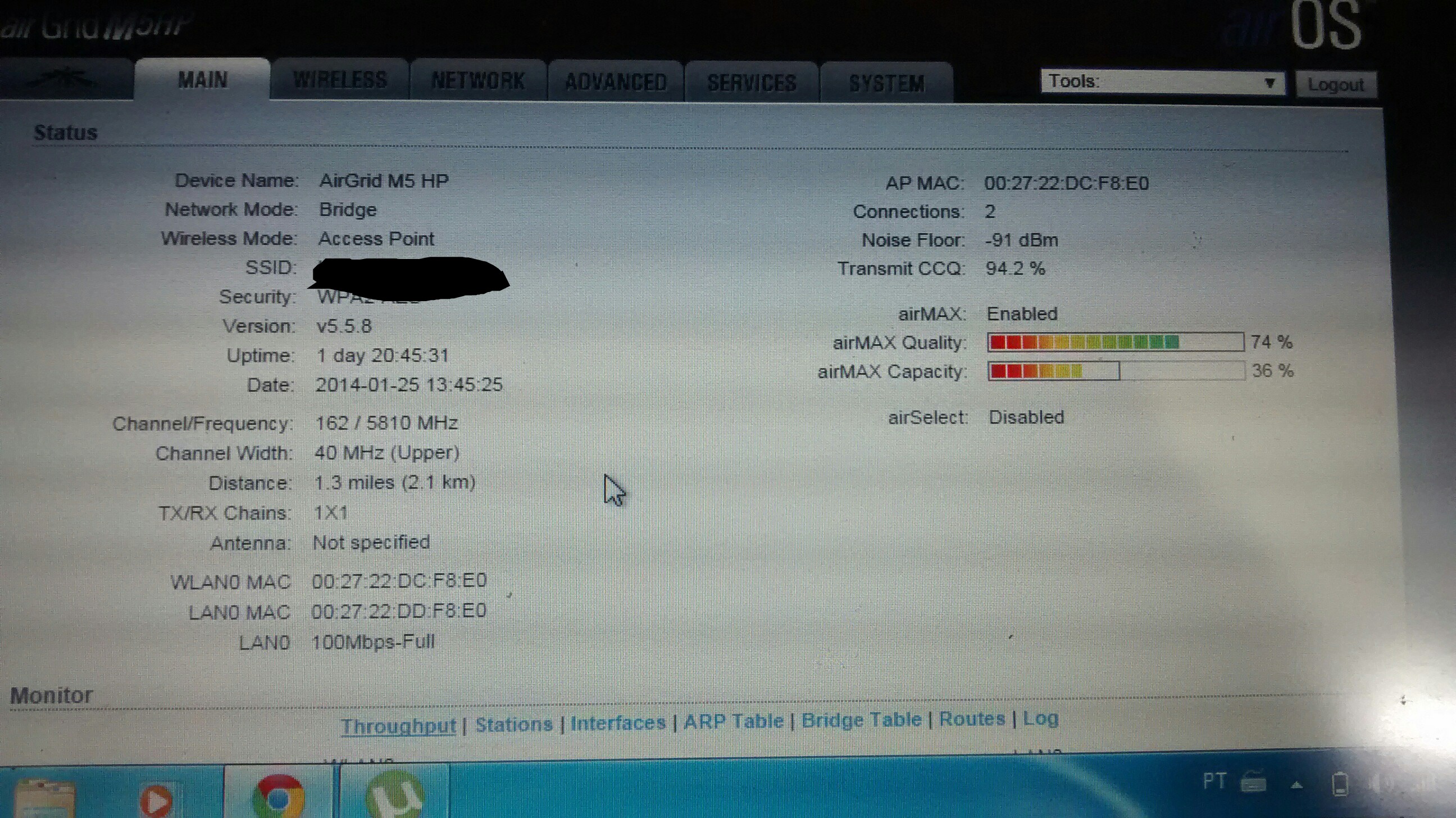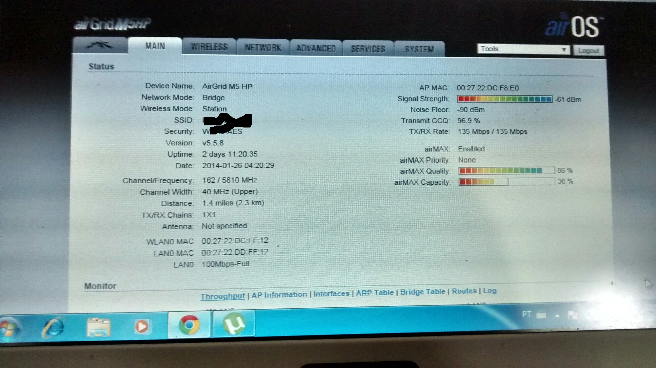 segue as fotos dos status do equipamento e visada onde o circulo verde é outro ponto do link .