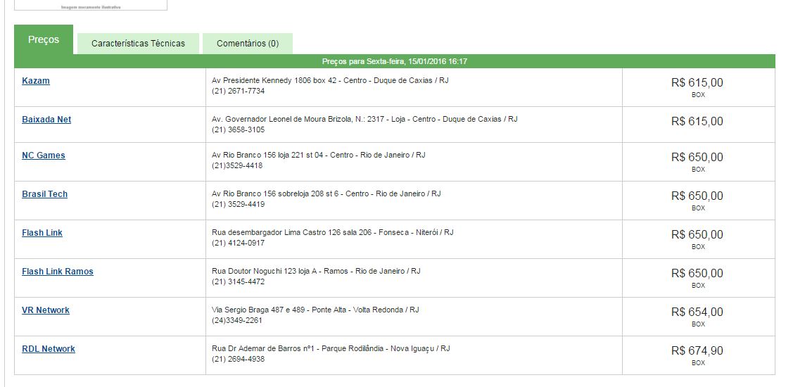 A mesma loja que me vendeu em dezembro de 2015 por R$ 430,00, hoje está vendendo por R$ 650,00