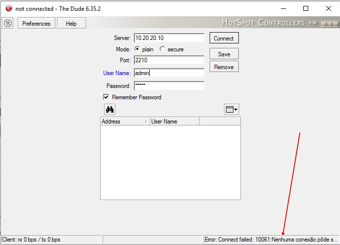 Pessoal tenho tentado usar o Dude na sua ultima versão 6.35.2 mais em sucesso. Alguém que usa poderia dar um help?Na versão 3.6 autenticar certinho sem problemas.