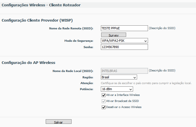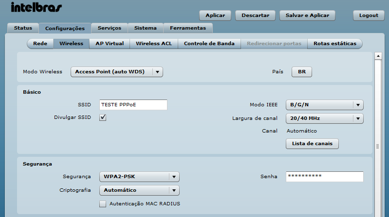 Senha PPPoE: testePPPoE