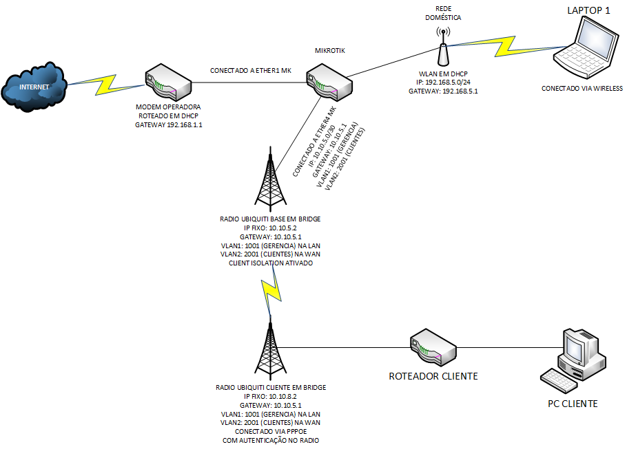 Montei um laboratório em casa para fins de estudo e aperfeiçoamento no quesito redes, já que o curso que tive na faculdade foi uma piada. Também para me familiarizar com a linha de produtos da Ubiquiti e Mikrotik.