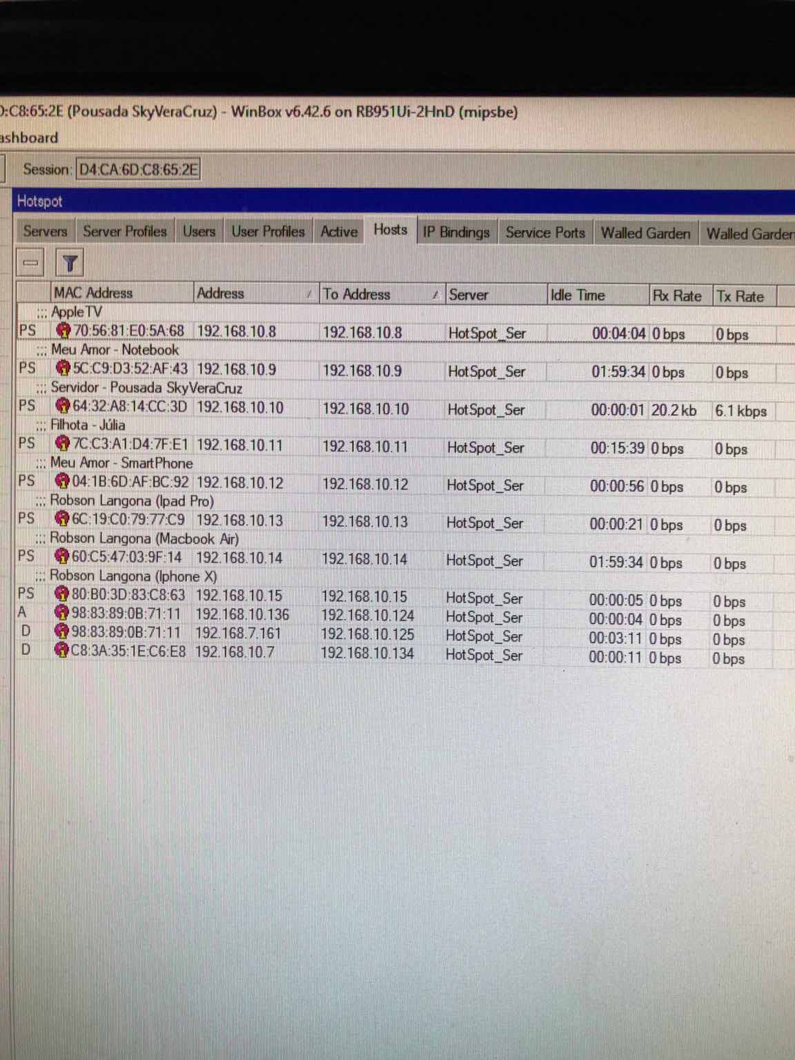 Para verificar a banda dos usuários do Hotspot você vai em IP>Hotspot>Active e verifica cada usuário do hotspot.