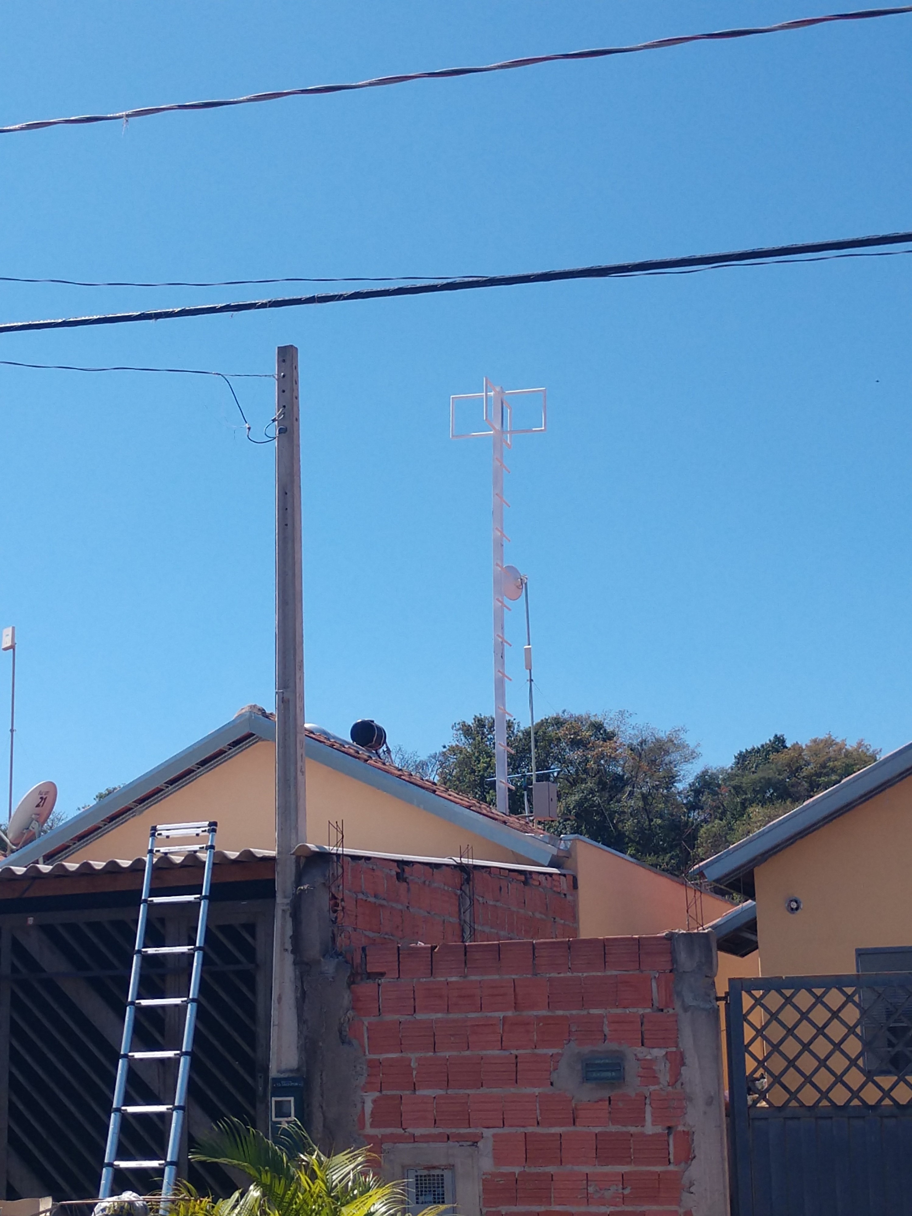 ID:      	69050 Ai ia colocando as antenas na estrutura da escada. oPoste seria o pilar, sera que aguenta? Clique na imagem para uma versão maior