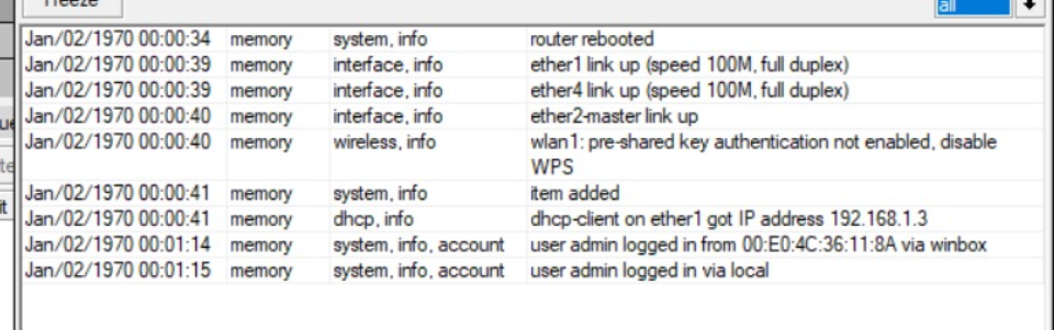 Veja no log (logo após ela reiniciar) se está dando algum erro de update ou kernel, passei por isso com uma CCR semana passada e só resolvi com Netinstall.