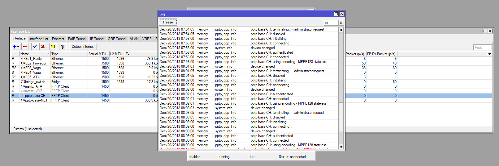 Estou com um problema só que não sei se alguém já passou por isso, possuímos uma parceria com uma portaria remota, e eles usam a VPN pra mandar comando de abertura de portão e atendimento remoto, só que ultimamente eles vem reclamando que a conexão dessa vpn vem caindo, como nós trabalhamos com link de rádio, eu não vi nenhuma queda ou interferência no msm, tem um rádio na matriz deles que fecha com as nossas outras repetidoras, já revisei tudo, mas ainda eu não sei o motivo da VPN cair tanto assim, como o meu link não é o único, eles tem outro link de outro provedor que também fecha a VPN só que a deles eu não vejo instabilidade nenhuma.